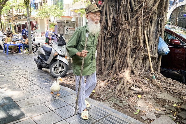ハノイの街角、アヒルを連れて散歩する名物男性 [特集] VIETJO(ベトジョー) 2024.11.17 ハノイの街角、アヒルを連れて散歩する名物男性[特集]午後3時、ハノイ市ハイバーチュン区ファムディンホー街区在住のグエン・ゴック・クアンさん(男性・61歳)が、手に持った棒で地面を叩くと、生後4...
