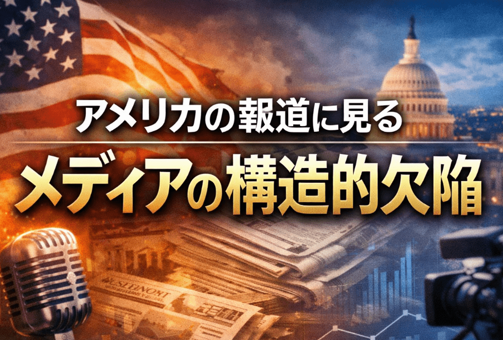 Newsmax TV 米保守メディア(英語限定の常時LIVE放送) あさ8(日本保守党)3分クッキング 百田尚樹・有本香のニュース生放送「ニュースあさ8時!」(略称あさ8)のAI要約 アメリカの報道に見るメディアの構造的欠陥 なぜ日本のメディアは同じ誤報と歪曲を繰り返すのか Total News World 2026.01.27 アメリカの報道に見るメディアの構造的欠陥 なぜ日本のメディアは同じ誤報と歪曲を繰り返すのかアメリカの報道に見るメディアの構造的欠陥私は政治について記事を書くブロガーとして、近年のメディア報道に対し、強い危機感を抱いています。その本質は、右か左か、保守かリベラルかという対立ではありません。分析が消え、物語だけが残っているという点で