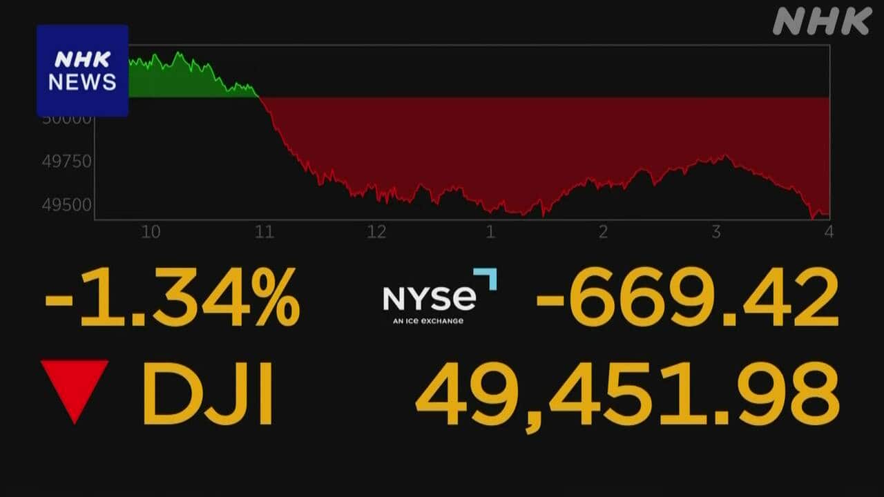 Newsmax TV 米保守メディア(英語限定の常時LIVE放送) あさ8(日本保守党)3分クッキング 百田尚樹・有本香のニュース生放送「ニュースあさ8時!」(略称あさ8)のAI要約 NYダウ 600ドル超値下がり AIの“負の側面”に警戒感で NHK(国際ニュース) 2026.02.13 NYダウ 600ドル超値下がり AIの“負の側面”に警戒感で | NHKニュース【NHK】12日のニューヨーク株式市場では、AIによって幅広い業界でこれまでのビジネスモデルが見直しを迫られるとの懸念から売り注文が広がり、ダウ平均株価は前日から600ドルを超える値下がりとなりました。ア