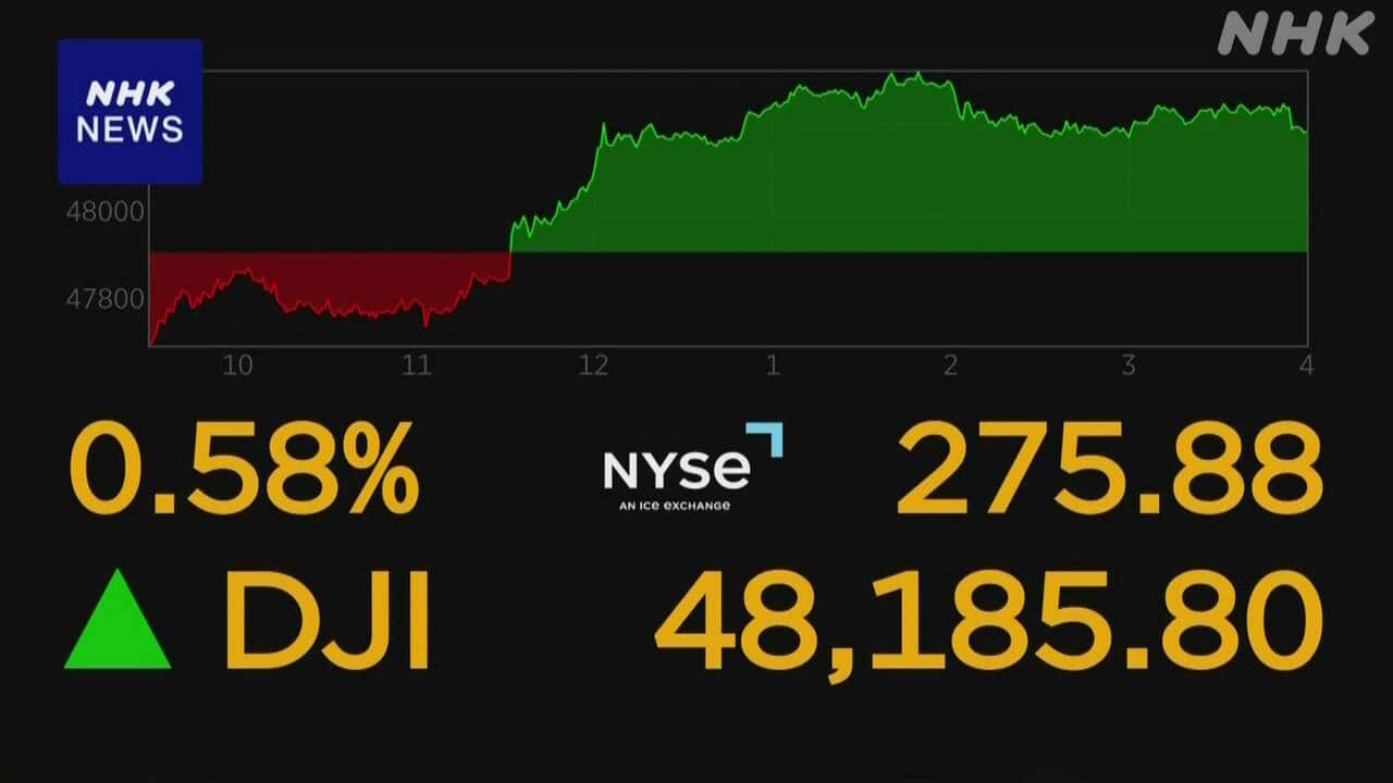 Newsmax TV 米保守メディア(英語限定の常時LIVE放送) REAL AMERICA'S VOICE 米保守メディア(英語限定の常時LIVE放送) あさ8(日本保守党)3分クッキング 百田尚樹・有本香のニュース生放送「ニュースあさ8時!」(略称あさ8)のAI要約 NYダウ 4万8000ドル台を回復 停戦維持への期待感から NHK(国際ニュース) 2026.04.10 NYダウ 4万8000ドル台を回復 停戦維持への期待感から | NHKニュース【NHK】9日のニューヨーク株式市場ではアメリカとイランによる停戦が維持されるとの期待感から買い注文が優勢となり、ダウ平均株価はおよそ1か月ぶりに終値として4万8000ドル台を回復しました。ニューヨーク株