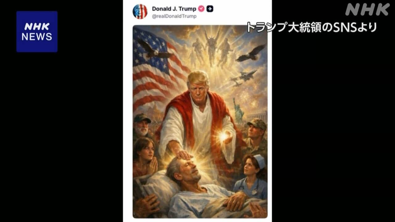 Newsmax TV 米保守メディア(英語限定の常時LIVE放送) REAL AMERICA'S VOICE 米保守メディア(英語限定の常時LIVE放送) あさ8(日本保守党)3分クッキング 百田尚樹・有本香のニュース生放送「ニュースあさ8時!」(略称あさ8)のAI要約 トランプ大統領 キリスト教保守派からも批判 投稿の画像めぐり NHK(国際ニュース) 2026.04.14 トランプ大統領 キリスト教保守派からも批判 投稿の画像めぐり | NHKニュース【NHK】アメリカのトランプ大統領が12日にSNSに投稿した画像をめぐり、自身をイエス・キリストに似せたものだとして、支持基盤のキリスト教保守派の一部からも批判の声があがりました。その後、投稿は削除され、トラン
